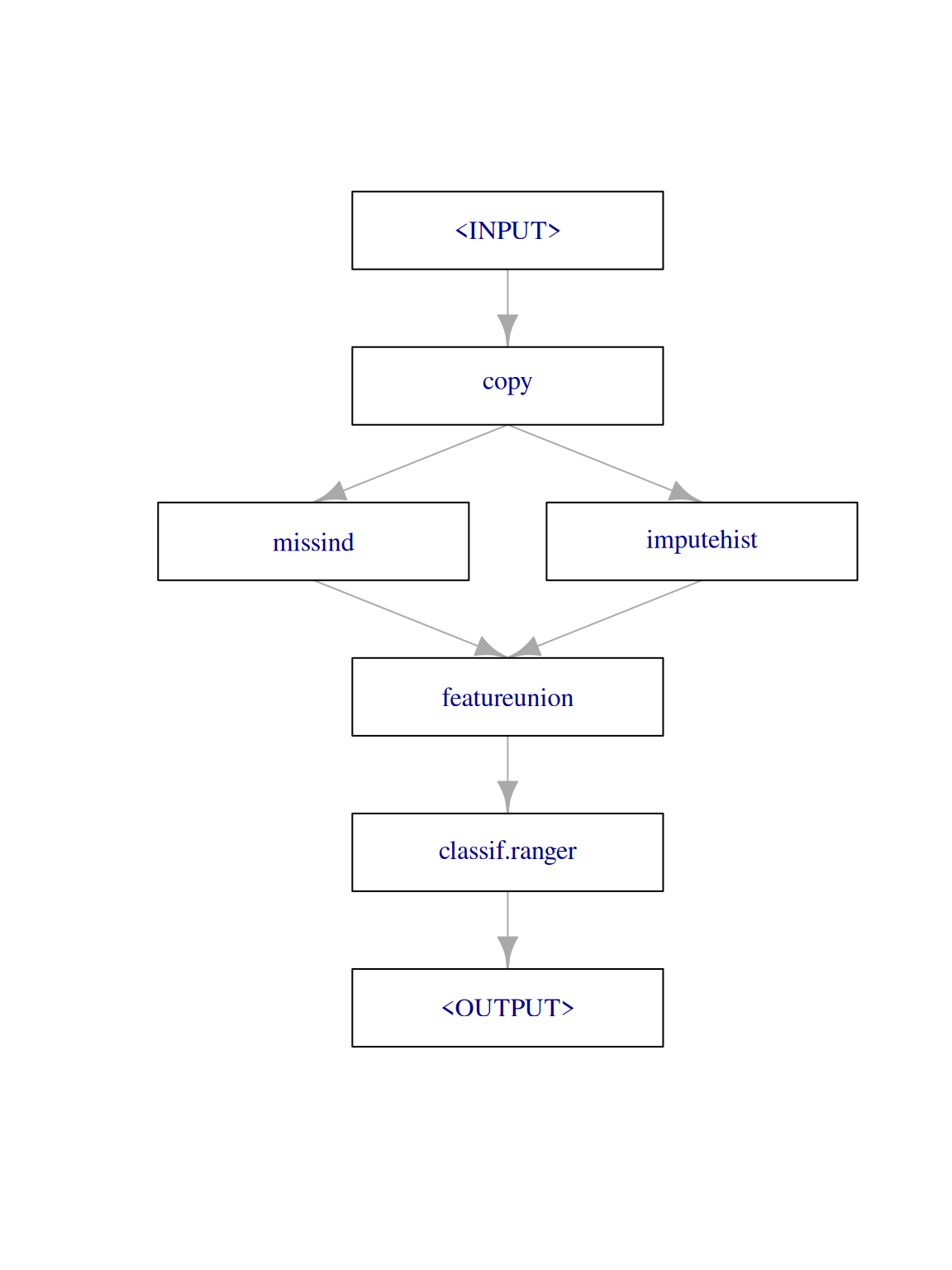 We do this by creating a Graph that copies the data twice, processes each copy using the respective imputation method and afterwards unions the features. For this we need the following two PipeOps : * copy: Creates copies of the data. * featureunion Merges the two tasks together.